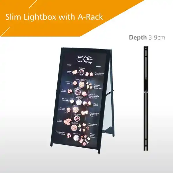 Los innovadores carteles LED en forma de A de LIGHTEK son la solución perfecta para exhibiciones llamativas. Diseñadas para uso en interiores, estas cajas de luz ultradelgadas se integran perfectamente en las estructuras en forma de A, mejorando la textura del producto y creando una experiencia visual de primera calidad. Disponibles con cajas de luz de una o dos caras, ofrecen una versatilidad incomparable para puestos de café móviles, exhibiciones de tiendas minoristas y más. El soporte para carteles deslizable y fácil de usar admite carteles de hasta 39 mm de grosor, mientras que el diseño magnético integrado garantiza cambios de carteles sin esfuerzo. Los carteles en forma de A de LIGHTEK iluminan su marca con estilo y sofisticación.