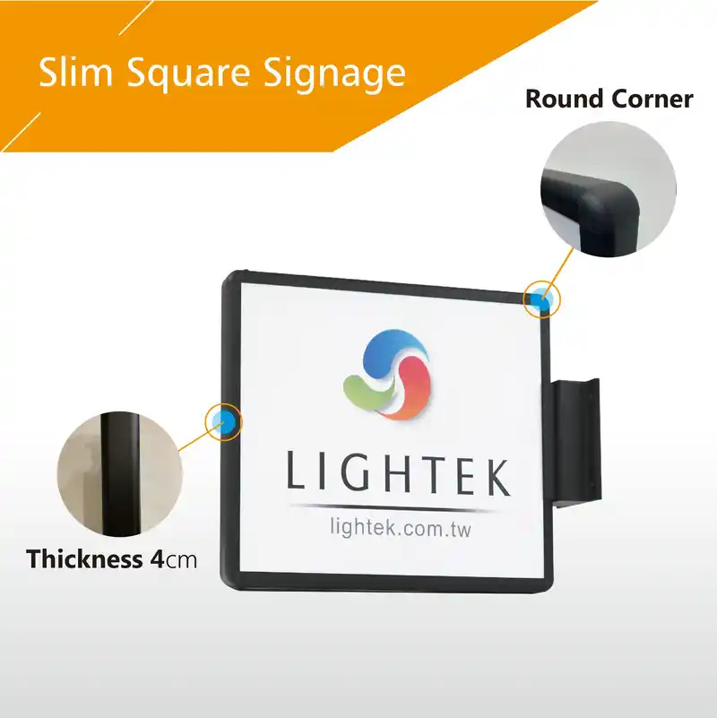 LIGHTEK, an outdoor light box signs supplier, specializes in crafting illuminated signage solutions that enhance brand visibility for businesses like coffee shops and retail stores. Our versatile light boxes feature a modern design with plastic round corners and can be displayed as both countertop or wall hanging frames, suitable for both indoor and outdoor use. The square edge-lit light boxes utilize opal acrylic panels with backlit illuminating LEDs, creating a stunning visual effect that highlights your graphic with light emanating from the edges. Side mounting ensures a sleek and unobtrusive installation, making LIGHTEK's light boxes the perfect choice for showcasing your logo and attracting attention.