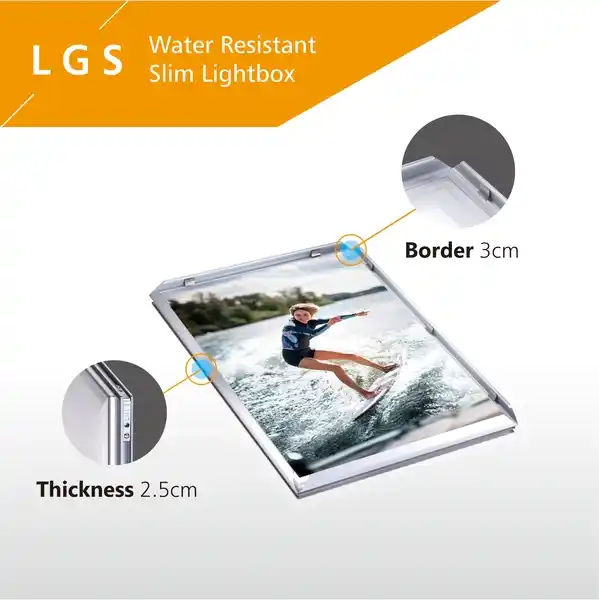 LIGHTEK outdoor illuminated menu boxes offer restaurants and businesses a vibrant, weatherproof platform for showcasing promotions, day or night. These versatile light boxes can be displayed vertically or horizontally, adapting to any location with a simple drainage hole adjustment. Long-life LEDs ensure brilliant, low-maintenance illumination, while a laser-engraved light guide plate guarantees even light distribution, drawing attention to your marketing message. The slim 25mm frame profile adds a modern touch, and the DC 12V operation with a UL approved power supply ensures safety and efficiency. Made in Taiwan with precision and care, LIGHTEK outdoor illuminated menu boxes empower businesses to adapt their messaging quickly and easily, attracting customers and boosting visibility in any weather.