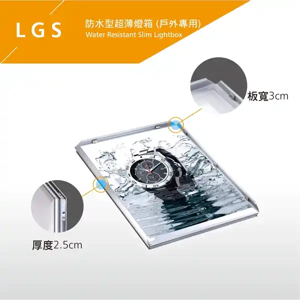 LED 室外防水型超薄燈箱非常適合安裝在零售商店、機場、辦公室、加油站、酒吧或餐廳的壁面跟柱體前吸引消費者的注意力。