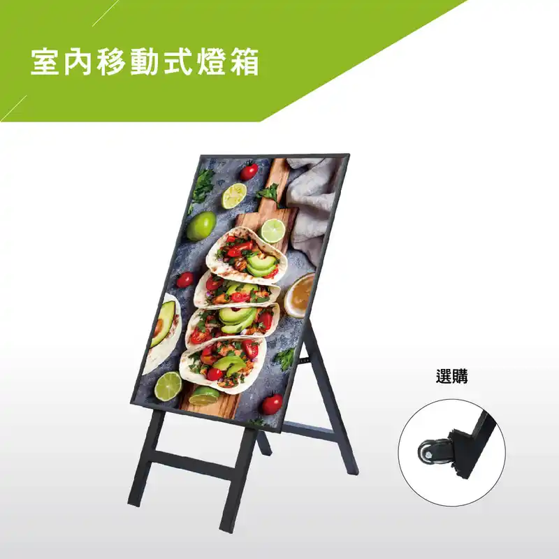 琦曜科技的移動式招牌燈箱,又稱落地式移動燈箱,是您宣傳展示的最佳利器。適用於行動咖啡車、展覽會場宣傳、零售店面展示產品資訊等多元場景。超薄燈箱固定於A字架上,可搭配不同尺寸燈箱,滿足您的各種需求。可選配室內或戶外防水燈箱,輕鬆應對各種環境。展示架可調整開合角度,適用於空間有限的地點,亦可調整燈箱傾斜角度,創造更佳視覺效果。外掛式燈箱設計,搭配磁鐵開邊或四邊翻蓋設計,方便更換燈片。展示架可選配輪子,方便拖曳移動,讓您的宣傳更加靈活機動。