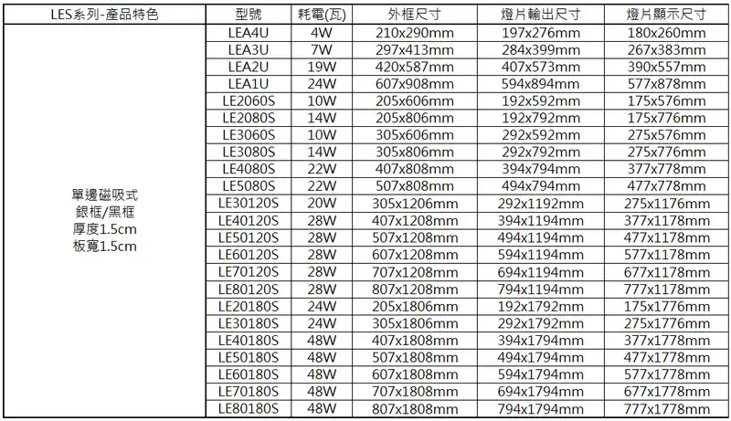 光源型式 | LED燈側邊打光(搭配導光板) |