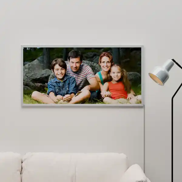 背面四邊鋁框軌道設計,搭配標配配件可吊掛於壁面。