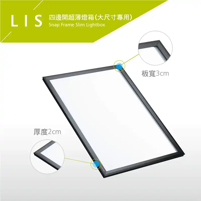 琦曜科技提供超薄燈箱,是您製作菜單、展覽展示、零售店面新品展示等招牌燈箱的理想選擇。產品可直放或橫放使用,超薄結構僅20mm,輕巧不占空間。LED燈低維護成本且壽命長,搭配雷射打點導光板,確保光線均勻分佈,呈現最佳視覺效果。規格品框色提供陽極霧銀和霧黑兩款,並可針對批量需求進行客製化顏色,滿足您獨特的風格需求。琦曜科技的超薄燈箱安裝方便,更換燈片更是快捷,只需打開正面四邊的邊框,放入燈片後蓋上邊框即可,讓您輕鬆更新廣告資訊。