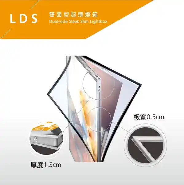 琦曜科技專精於廣告燈箱製作,推出創新的雙面燈箱,為您的廣告宣傳帶來雙倍效益。產品可應用於玻璃櫥窗前,讓內外消費者都能看到廣告內容;亦可與鐵架或木體搭配,應用於中島展示,或結合鐵件、木櫃等,創造更多元的展示方式,提升產品曝光效果。琦曜科技的雙面燈箱可直放或橫放,並可搭配掛耳與鋼線懸掛安裝,靈活融入各種空間。產品採用雙面光源設計,兩面的燈片內容互不干擾,呈現清晰明亮的視覺效果。超薄結構,厚度僅13mm,輕巧不占空間,雷射打點導光板確保光線均勻分佈。