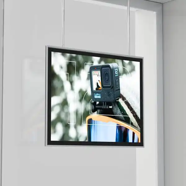 - 如果玻璃牆內外都有可見度,雙面燈箱可同時展示給室內與室外。