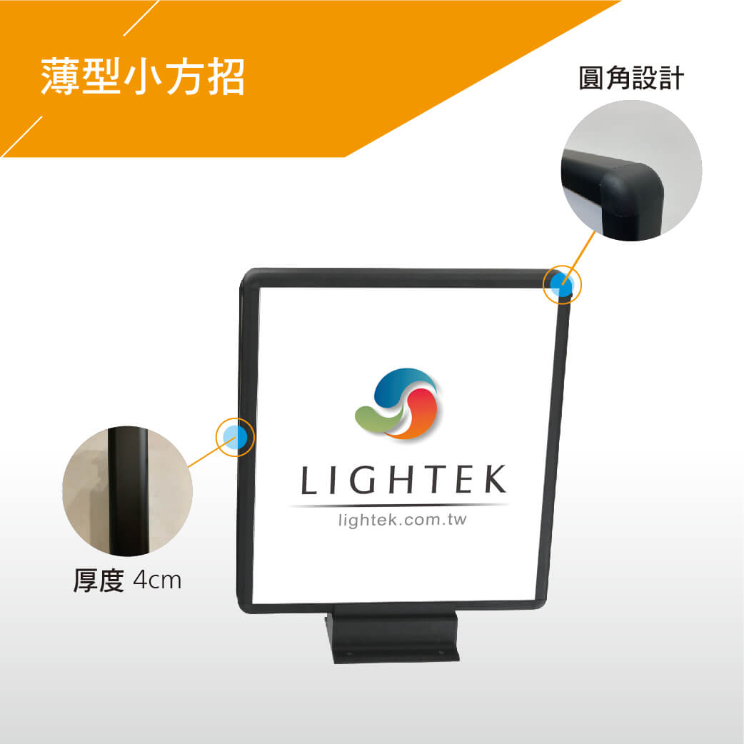 琦曜科技專精於LED燈箱製作,提供多款小招牌燈箱,如LED迷你燈箱等,是您品牌商標識別或店面招牌的最佳選擇。產品採用圓角設計,適用於零售店、飯店、公司行號、藥局等各種場所等等的小燈箱招牌,雙面發光,室內外皆可使用,並可安裝於桌面,應用彈性廣泛。琦曜科技的小燈箱招牌更換燈片的方式簡易方便,您只需自行將圖案貼在小燈箱兩側的乳白壓克力上即可。固定基座上設有四個孔位,只需挑選平整的平面,即可用螺絲輕鬆鎖上,安裝簡易快速。